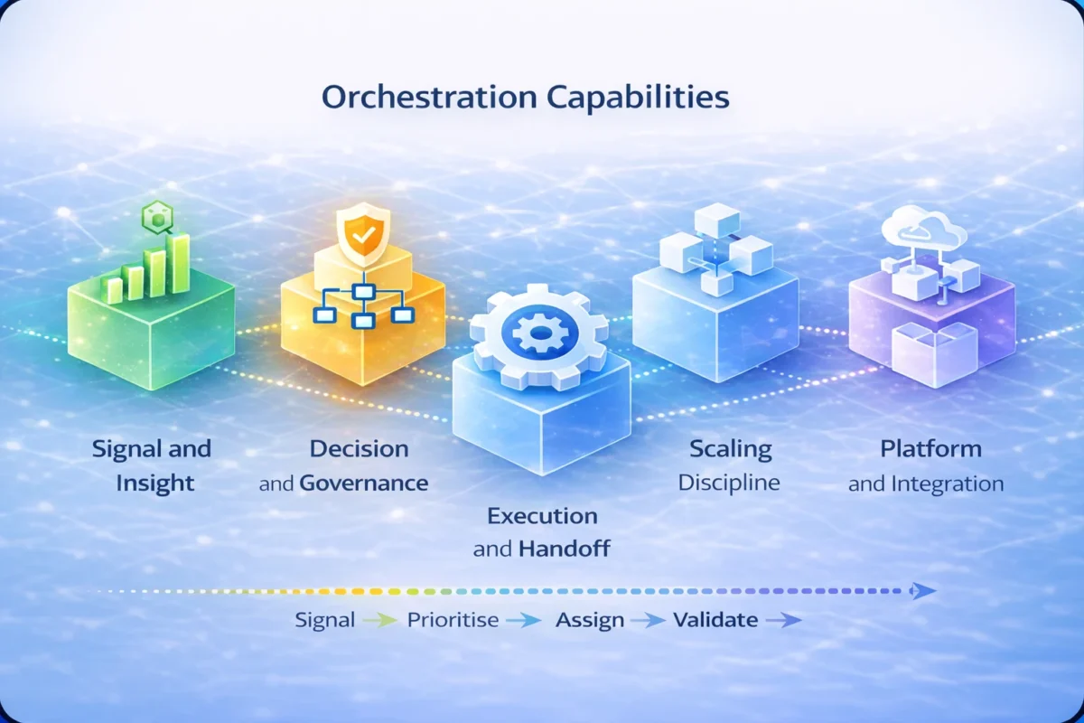 Most organisations start with a short diagnostic to see where execution is leaking and where orchestration will matter most.